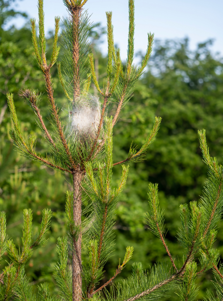 - – Présence de nids soyeux sur les pins ou chênes